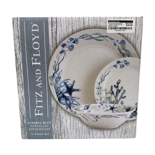 Fitz And Floyd Sanibel Blue 12-Piece Porcelain Dinnerware Set