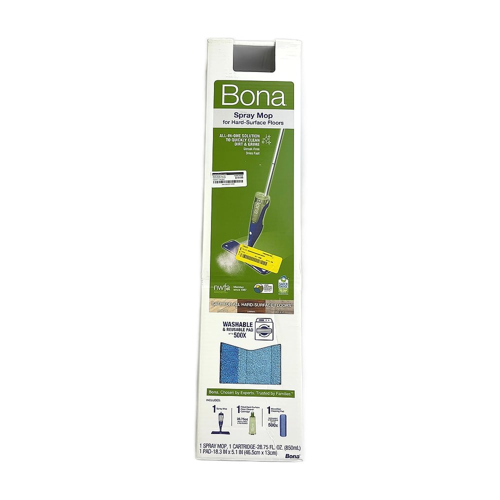 This Bona spray mop features an extra-large mop head and sturdy handle for efficient cleaning of hard-surface floors. The built-in spray mechanism delivers cleaning solution directly to floors, and the retractable hook enables convenient storage. Designed to leave floors clean and beautiful with minimal effort.