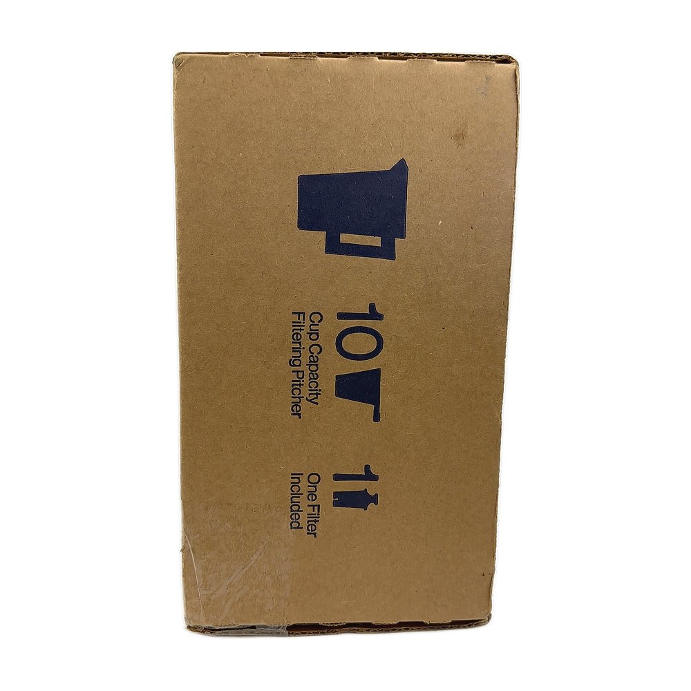 10-cup water filter pitcher that removes 99% of lead, includes one replacement filter.