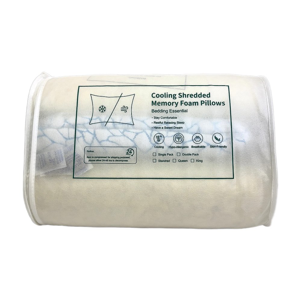Cooling pillow infused with gel shredded memory foam for improved ventilation and temperature control.