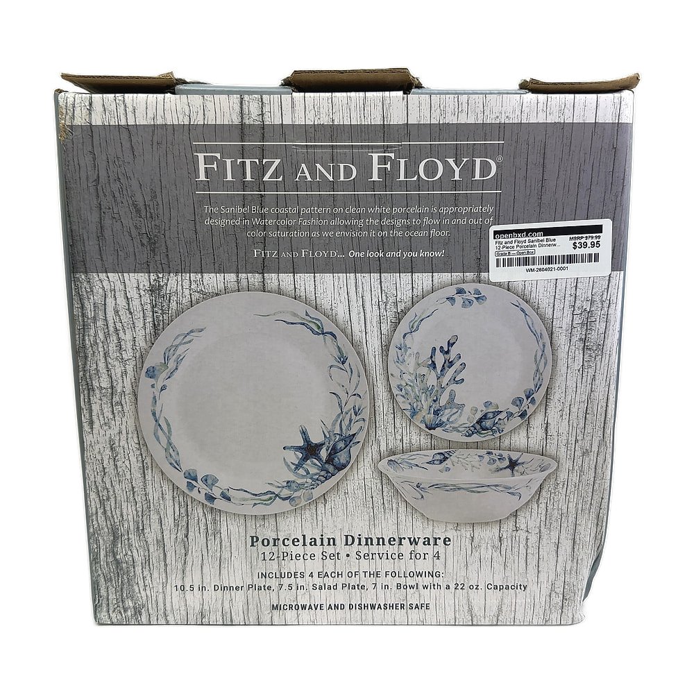 Fitz and Floyd Sanibel Blue 12-Piece Porcelain Dinnerware Set