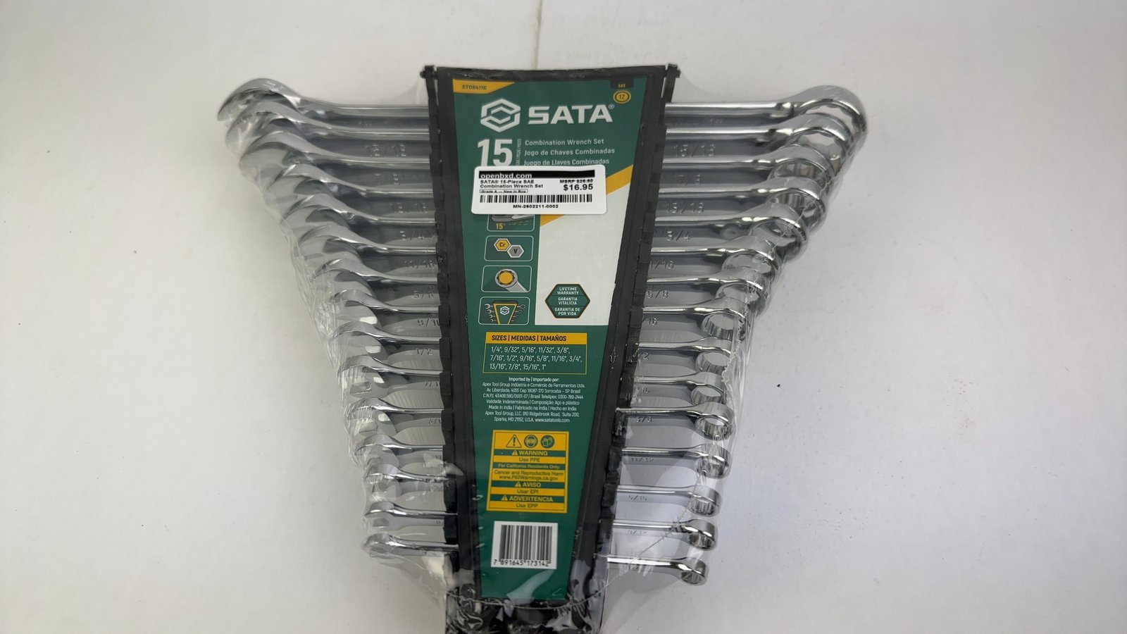 This 15-piece SAE combination wrench set from SATA includes both open-end and box-end wrenches for versatile fastening applications. The wrenches are precision-forged from high-quality steel for durability and reliability. Ideal for automotive work, equipment maintenance, and general mechanical tasks.