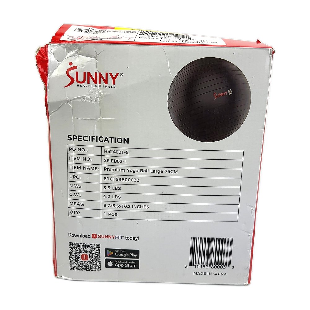Sunny Health & Fitness Premium Yoga Ball 75cm Large