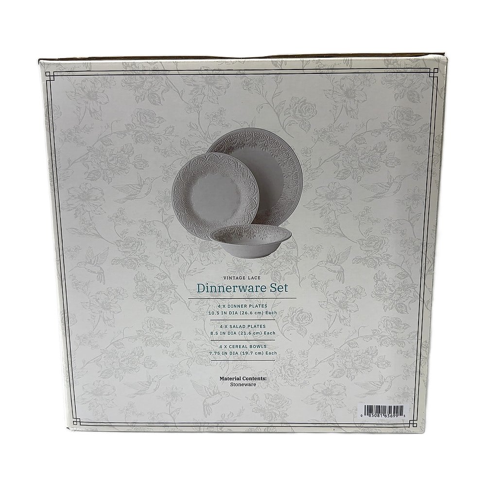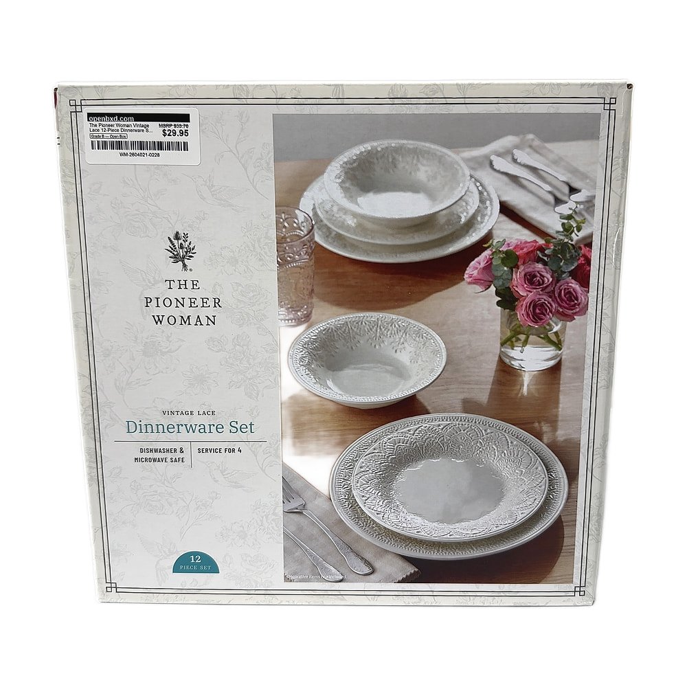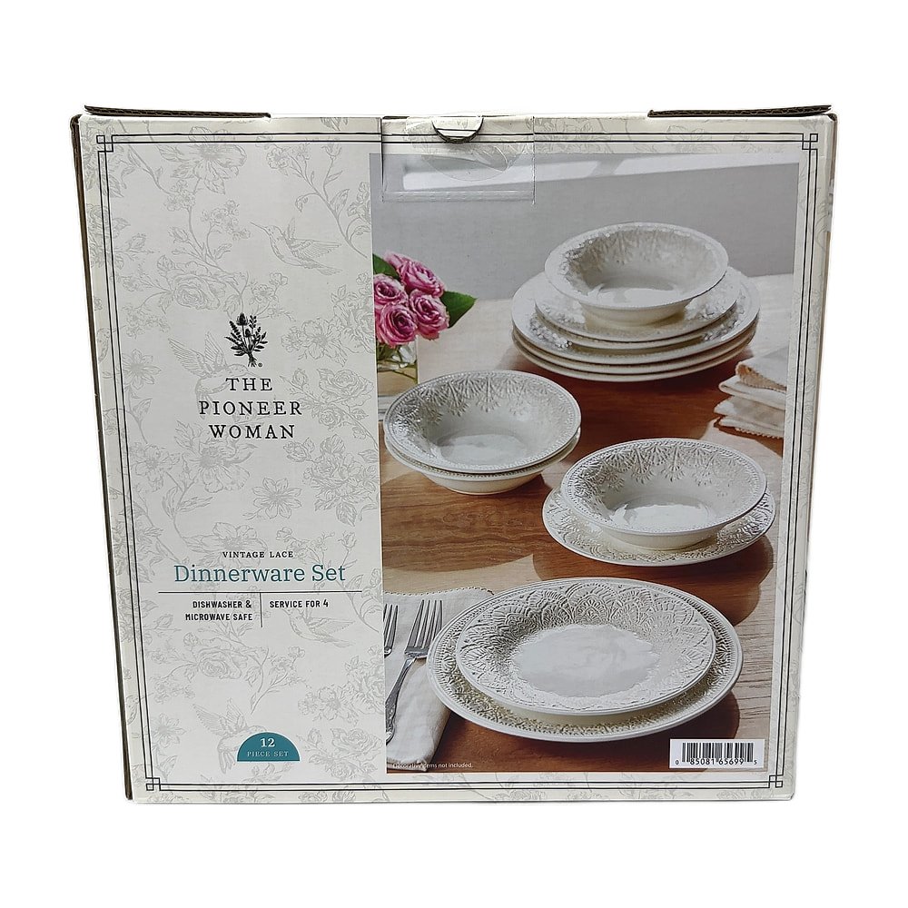 The Pioneer Woman Vintage Lace 12-Piece Dinnerware Set, Linen
